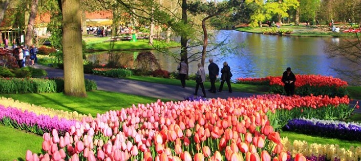 Hvert år kreeres der et helt nyt udtryk med et hovedtema. Parken holder kun åbent 7 uger om året, men hvert år tiltrækker den ca. 800.000 besøgende. Det er uden tvivl det bedste sted at se tulipaner i Holland. Keukenhof er helt enestående i verden og en uforglemmelig oplevelse for folk i alle aldre. Du kan komme til parken fra sin bådferie på cykel fra Leiden, hvorfra du cykler langs tulipanmarker og det enestående hollandske landskab.