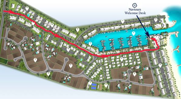 Navtours office is next to the fuel dock and in front of the Palm Cay club house