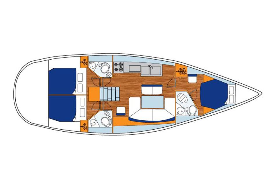 Jeanneau 44i Premier med 3 kabiner og tre toiletter er 1-3 år gammel. 44i er Jeanneau's nyeste skud på stammen i klassen af high-performance sejlbåde. Yachten er bygget for optimal komfort og designet for sjov sejlads til alle typer af sejlere. Her er en sejlbåd, som kan manøvrere perfekt i al slags vejr på åbent vand og som kombinerer performance med komfort og en god udstyrsliste.